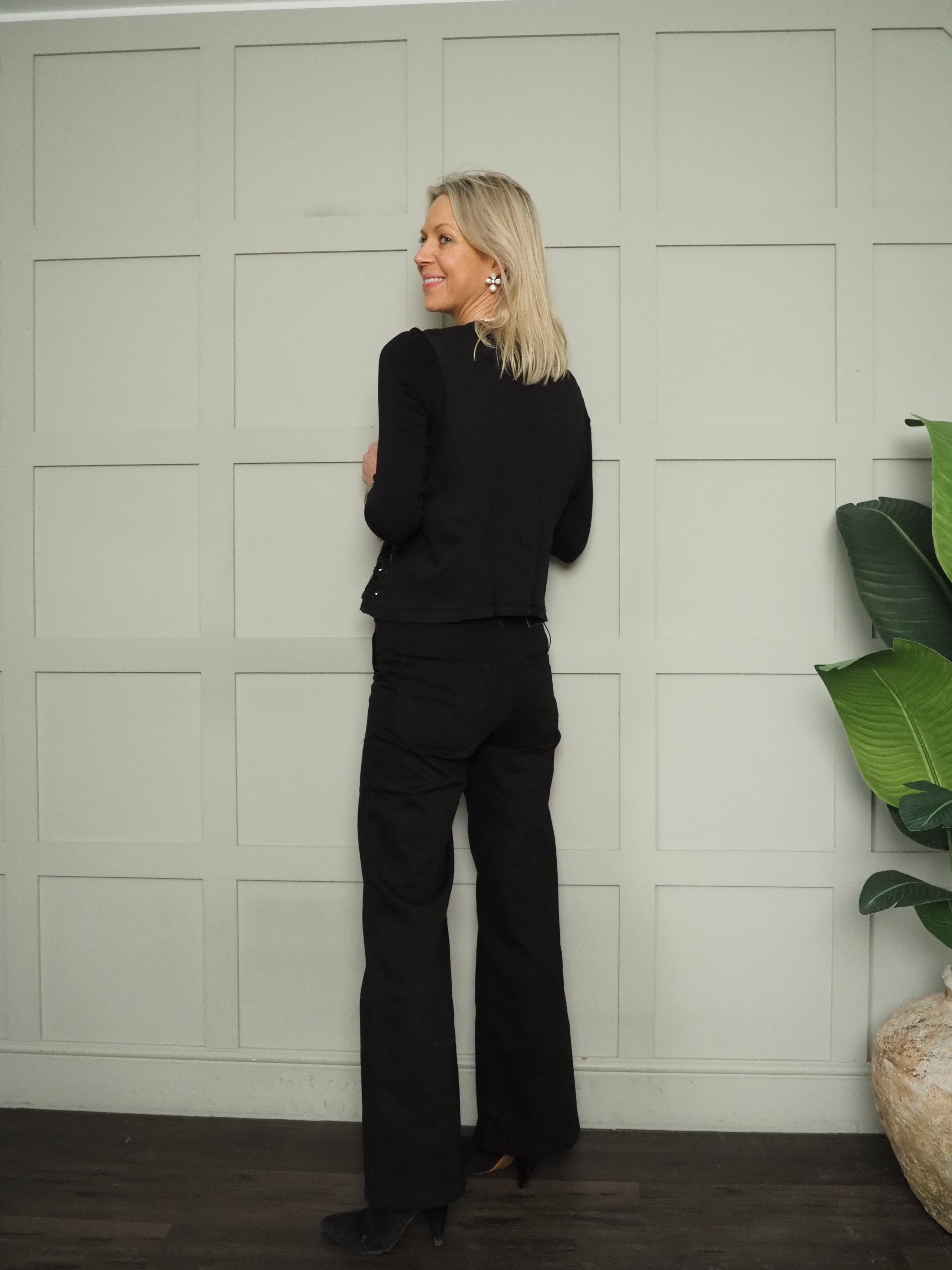 This waistcoat will add a bit of fun and sparkle to any outfit. It has sequins at the front and plain jersey style at the back. It is longer at the front.