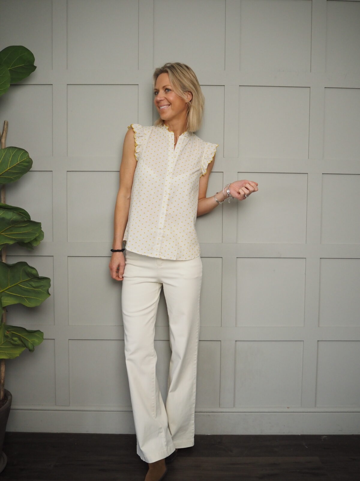 JayJay Sleeveless Blouse - Off White/Yellow
