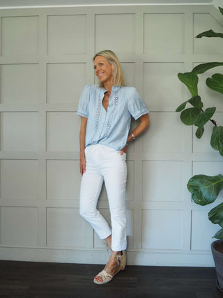 Magana Embellished Short Sleeve Blouse by Soaked - Ecru and Grey