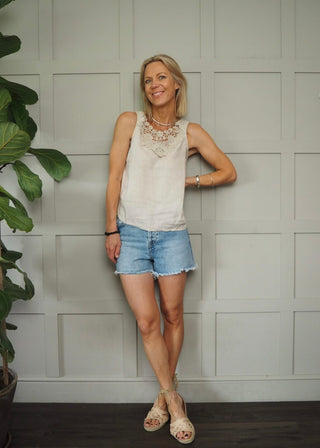 Pandora Linen Vest Top - Blue, Rose Pink, Stone, White
