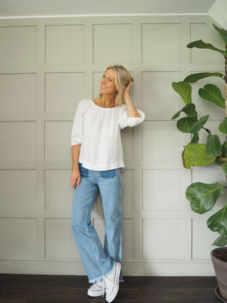 Bronya Linen Blouse with 3/4 Length Sleeves with Elasticated Cuffs - 6 Colours
