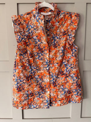Rachel Blouse with Cap Sleeves - Floral Orange