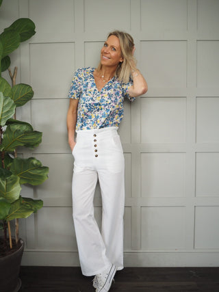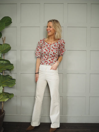 Axelle Short Cap Sleeved Floral Blouse - Cream