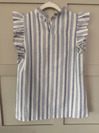 Grace Cap Sleeves Top - Blue/Off White Stripes