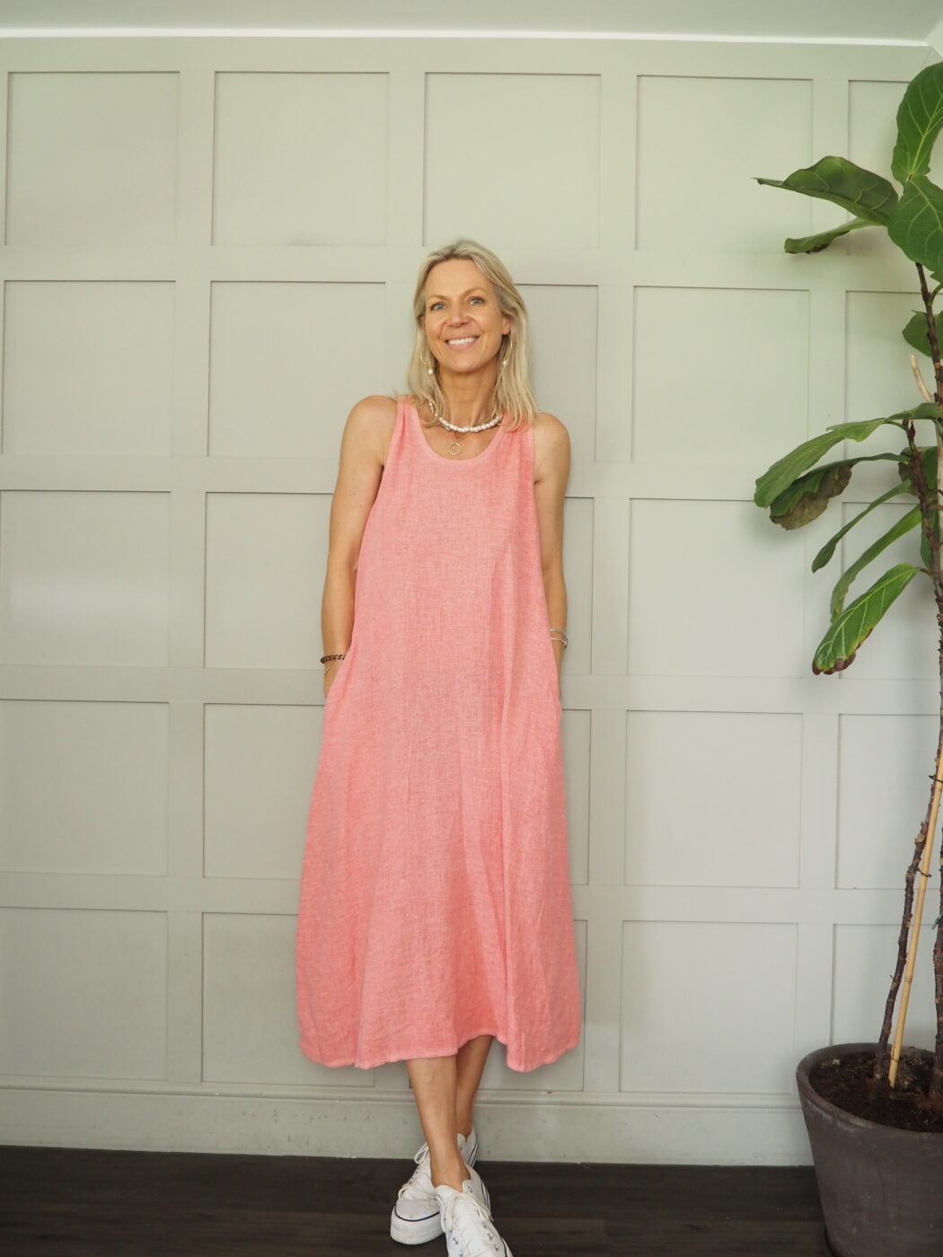 Dylan Linen Mix Dress - Coral, Cornflower Blue, Stone