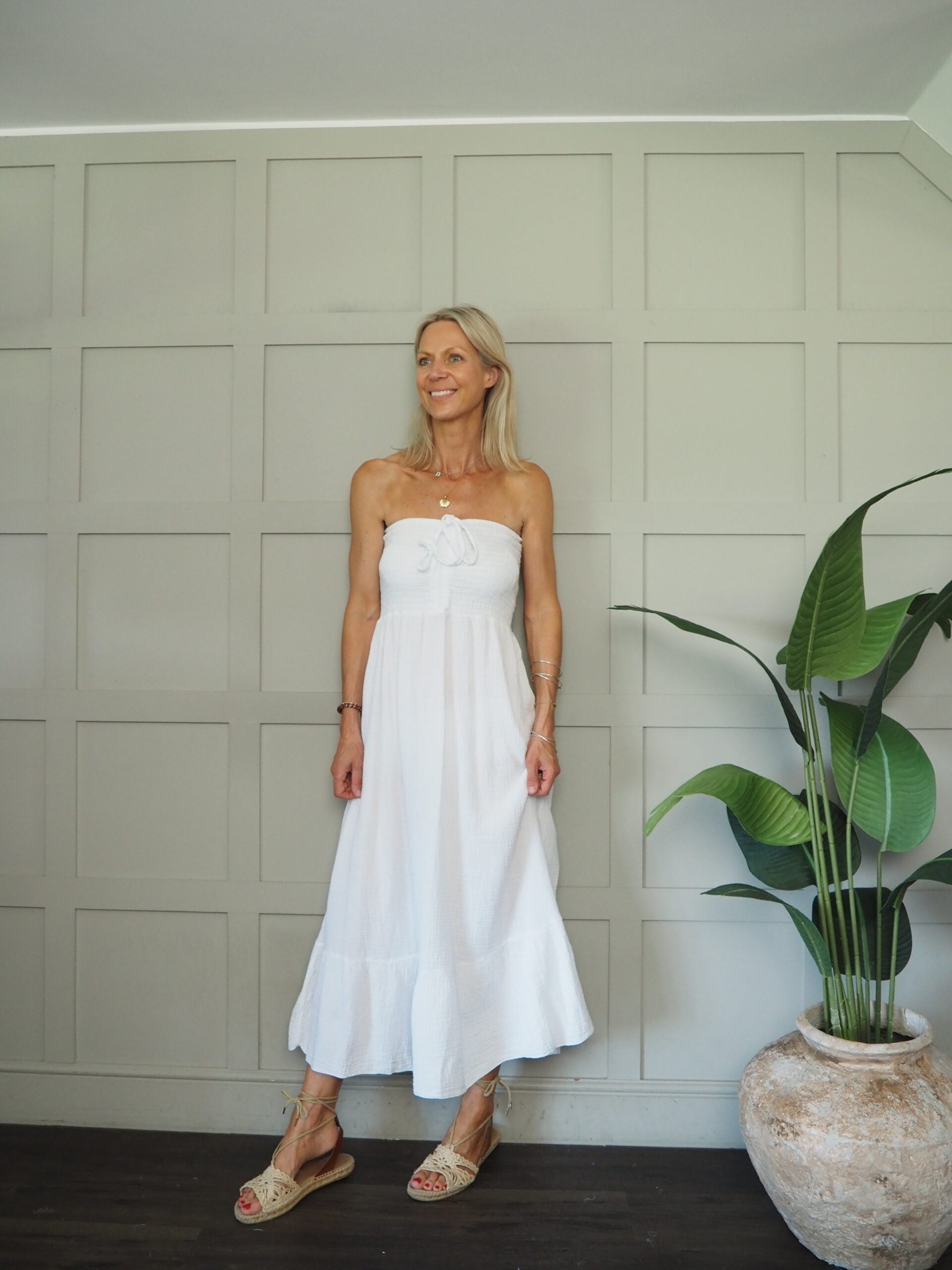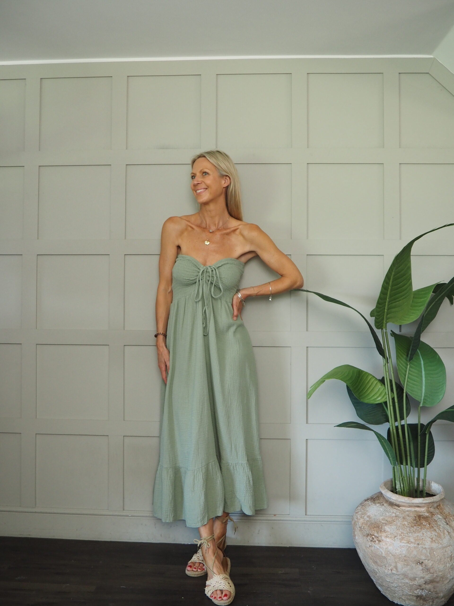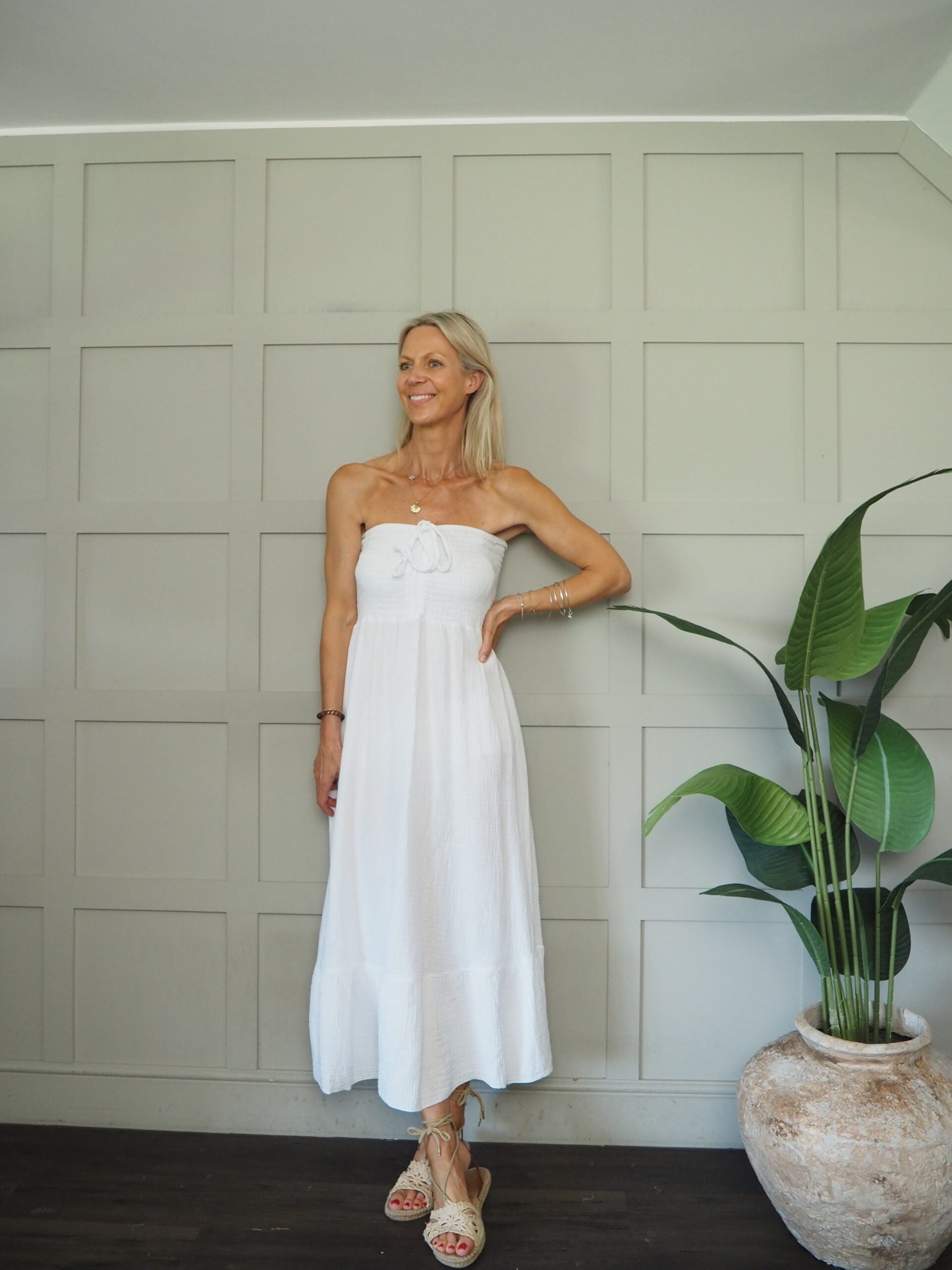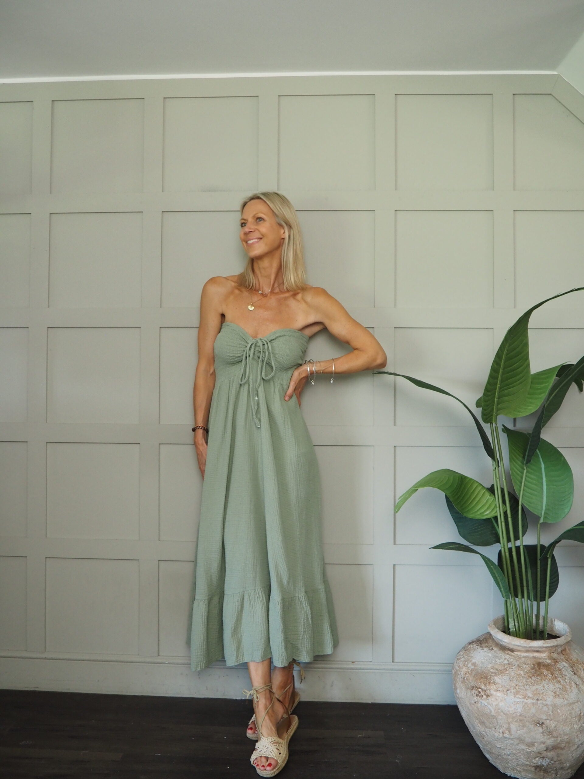 Sizing: One size to will fit 8-14. Becky is a size 8-10 and 5’9” tall.