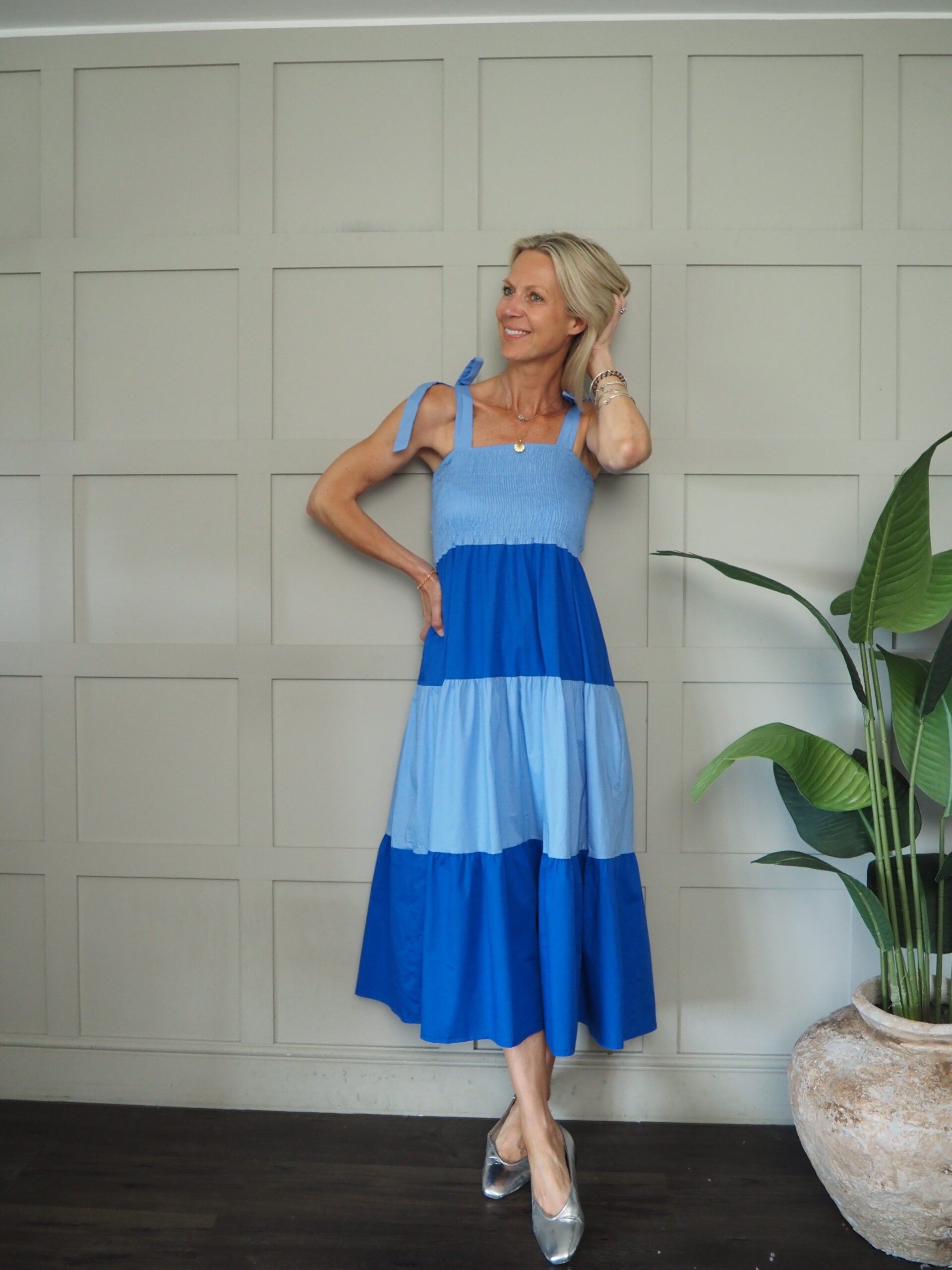 This blue stripe sundress is a such a gorgeous piece to wear either here or on holiday. It has a smocked bodice and adjustable tie straps making it very comfortable to wear. An easy, fun addition to your summer wardrobe.