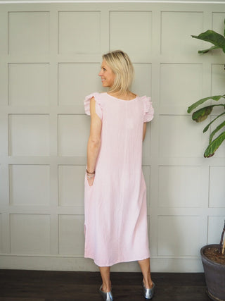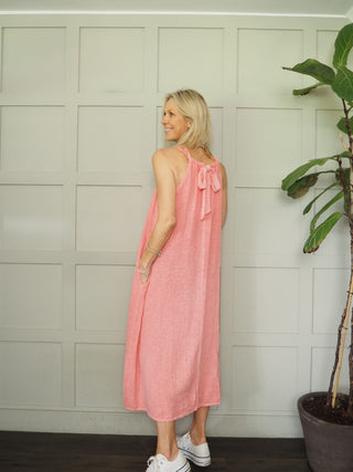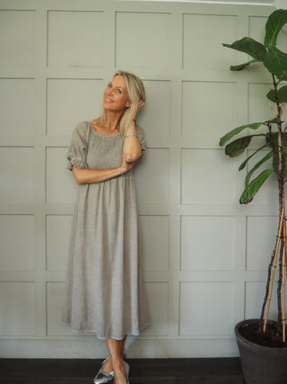 Kensington Linen Dress - Khaki Green, Mushroom, Navy Blue, Tomato Red
