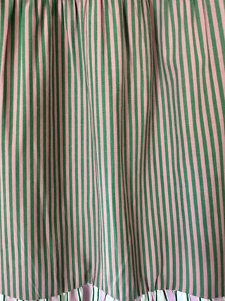 Eulalie Cotton, Striped Sun Dress with Ruched Elasticated Bodice & Tiered Skirt by Frnch - Green/Pink/White