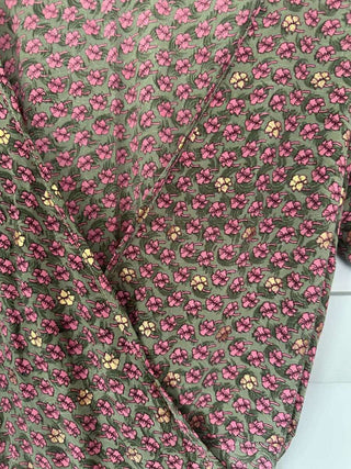 Rae Short Sleeved Dress with Button Front Fastening - Green, Pink