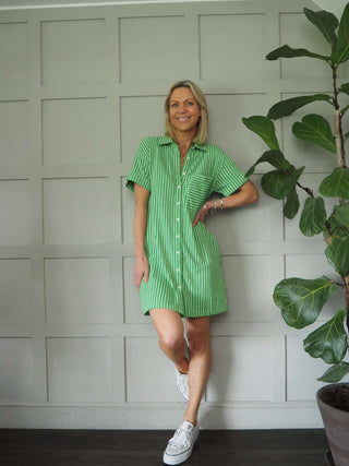 Odile Shirt Dress by Frnch - Green with White Stripes