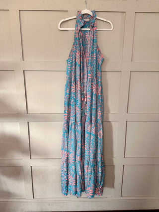 Daisy Silk Mix Maxi Dress - Blue/Pink/Gold
