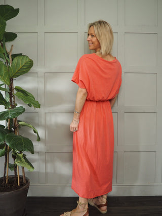 Laura Maxi T-Shirt Dress - Coral, Khaki, Sky Blue, White