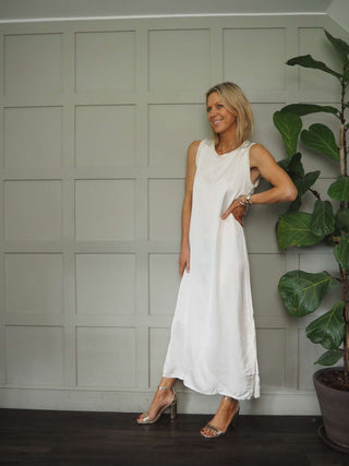 Suni Sleeveless Silk Mix Maxi Dress - Champagne, Dusty Rose, Khaki, Mushroom