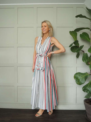 Blakie Maxi, Sleeveless Dress - Off White with Vertical Stripes
