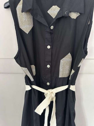 Cassie Cotton Embroidered Dress with Shirt Collar & Front Button Fastenings - Black, Off White