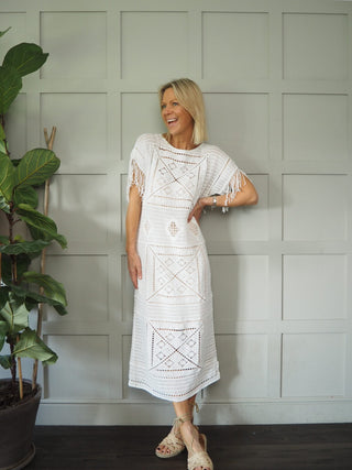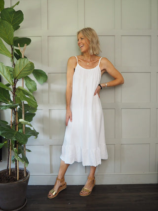 Eli Spaghetti Strap Sun Dress - Blue, Taupe, White