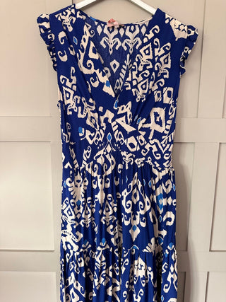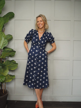 Cerisier-Lyn Knee Length Dress - Navy Blue, White