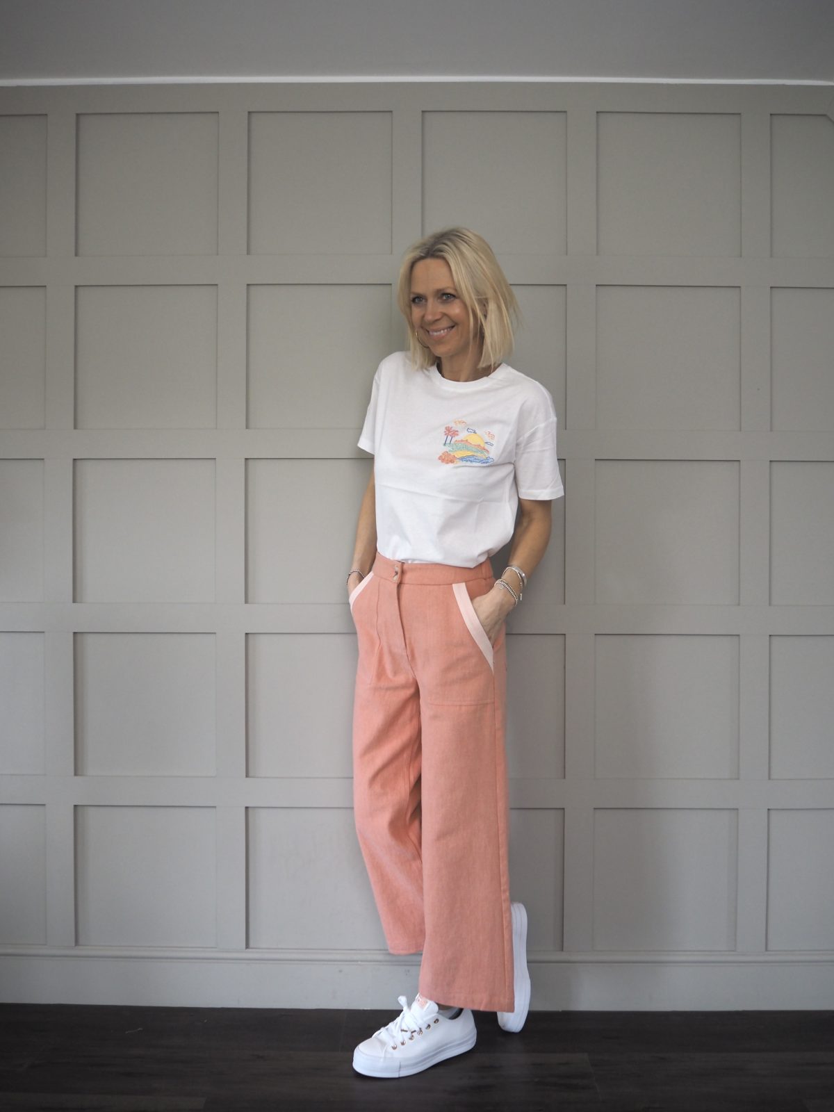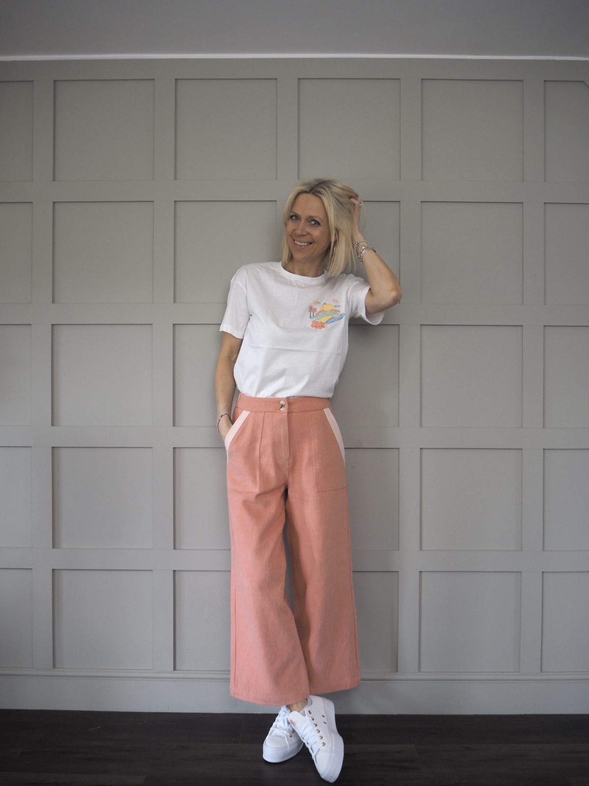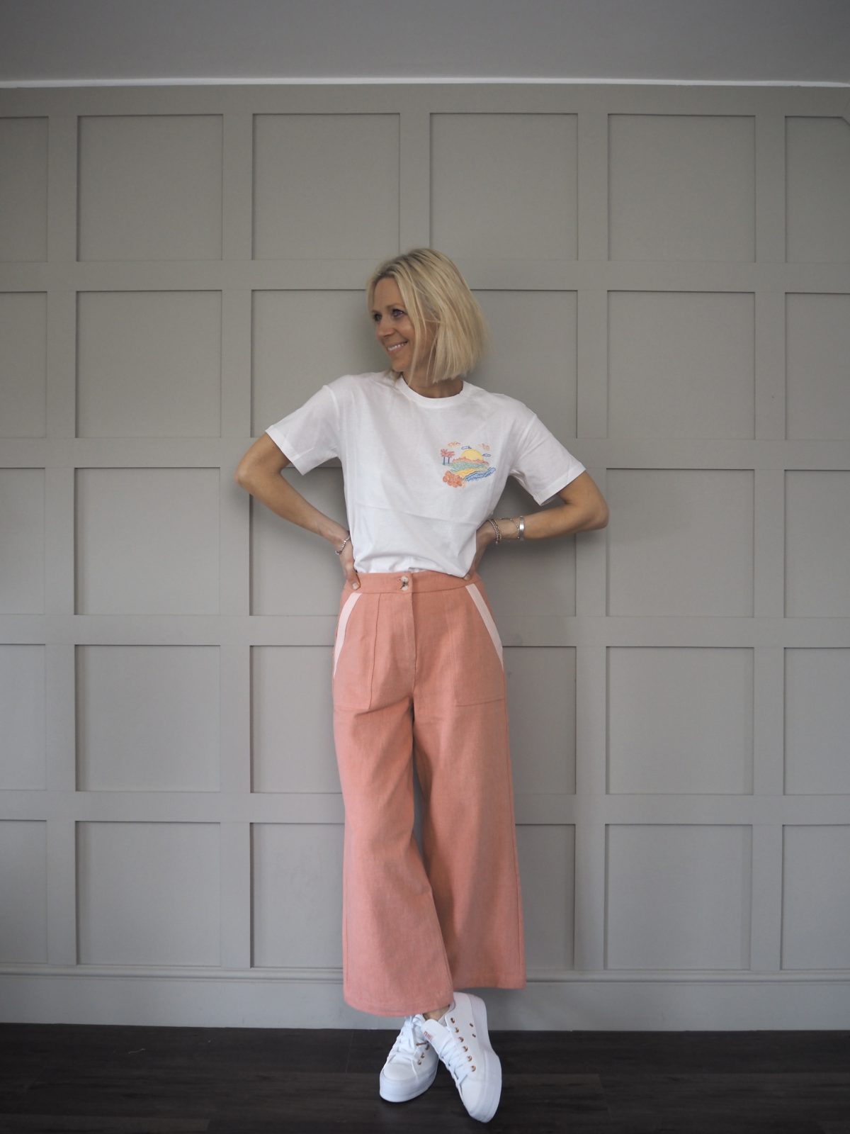 Worn here with pink Anya cropped wide leg soft jeans.