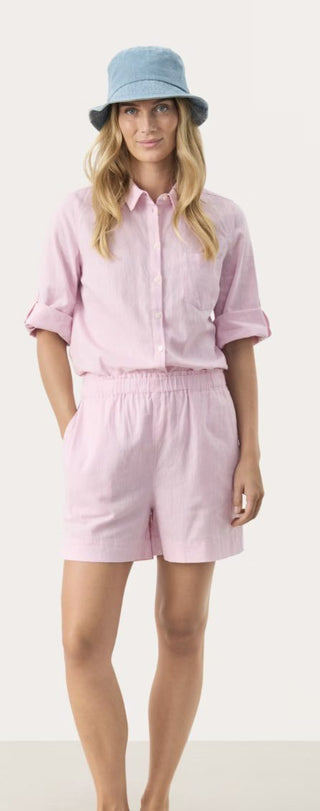 Rigge Linen Mix Summer Shorts by Part Two - Blue/White Stripes, Pale Pink