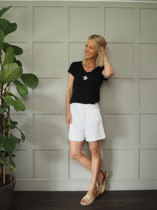Miami Tailored Shorts with Pockets - Black and Ecru