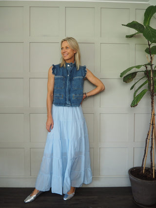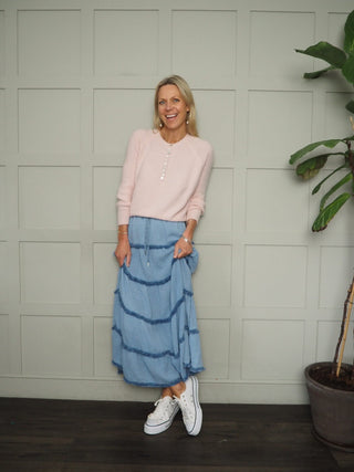 Lilibet Maxi Skirt with Elasticated Waist - Blue, Pink, Yellow