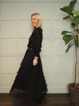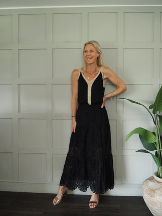 Bettie Anna Skirt with Fringing and Floral Detail by Soaked - Black