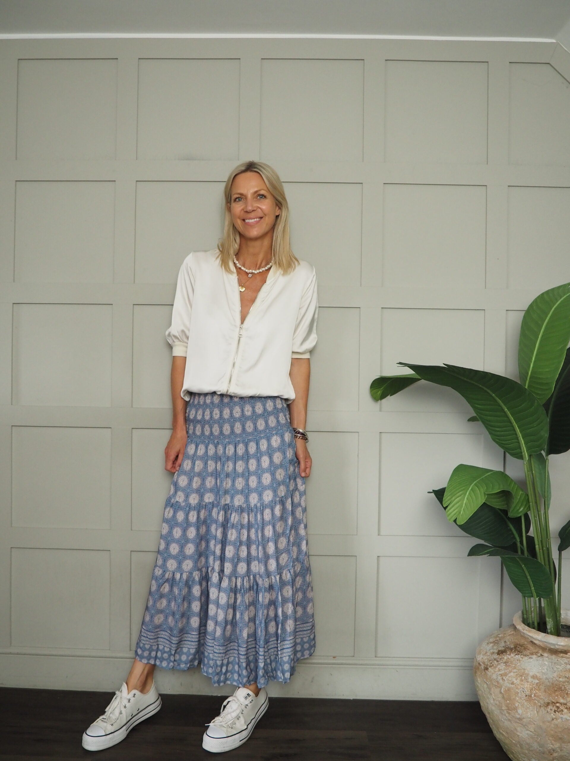 The Chichester skirt is lightweight, cool and comfortable, a versatile addition to your wardrobe. It has a stretchy, elasticated waist which will work on a wide range of sizes. It can be paired with a vest, T shirt, blouse or knit and can be styled with lots of different footwear to suit different occasions.