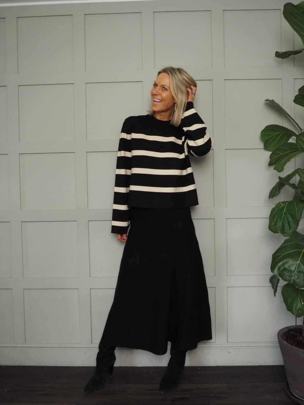 Sizing: S/M (8-10) and M/L (10-12). Becky is a size 8-10, 5’9″ tall and wears the S/M.