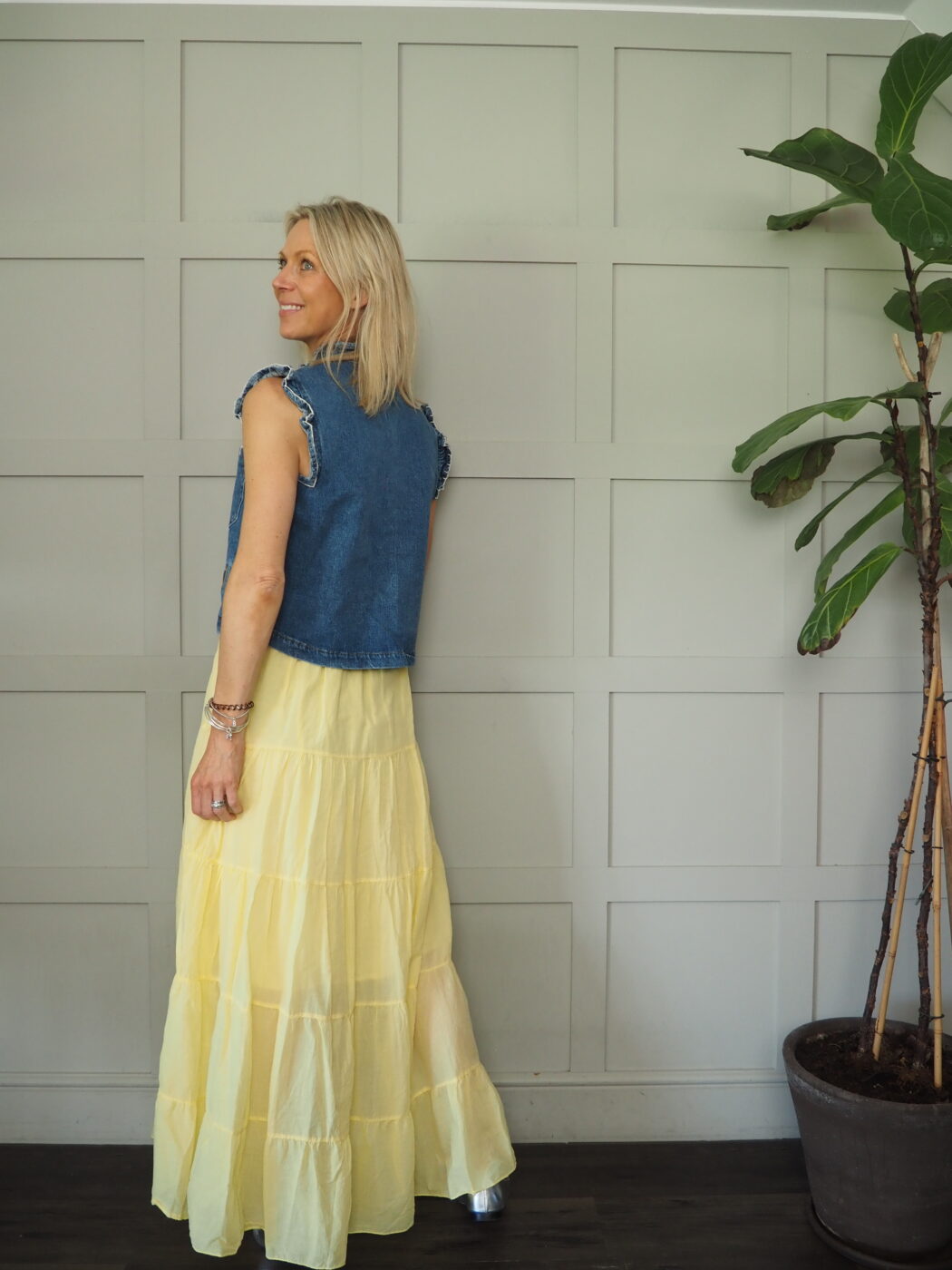 The Lilibet skirt is a lovely lightweight, cool and comfortable skirt which is beautiful for the spring and summer. It is tiered and lined to the knee and has a comfortable elasticated waistband. This skirt can be teamed with sandals, trainers or wedges to dress it up or down.
