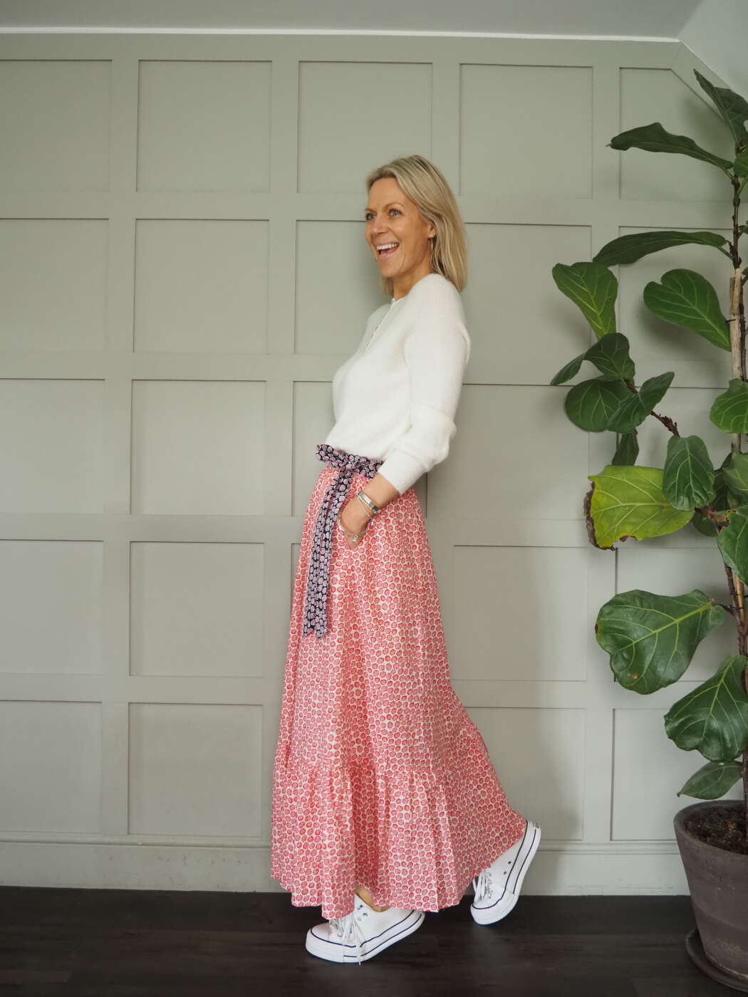 Lyna Maxi Skirt by Frnch - Cream with Pink/Red Floral Design