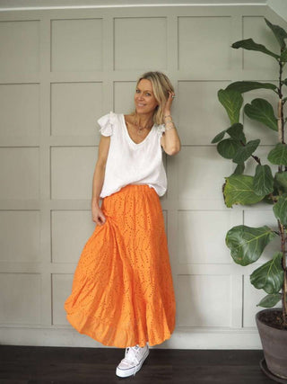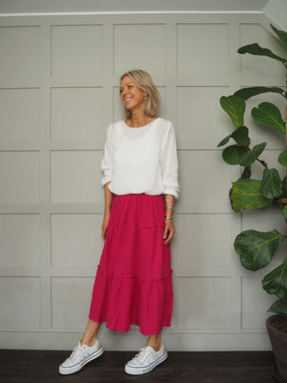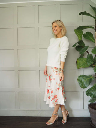 Lyna Maxi Skirt by Frnch - Cream with Pink/Red Floral Design