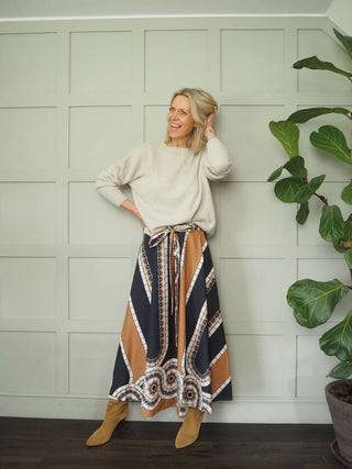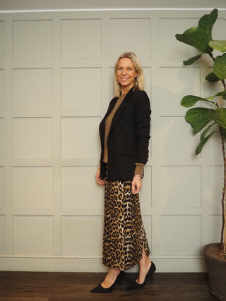 Skip Satin Slip Skirt with Elasticated Waist - Camel Leopard Print
