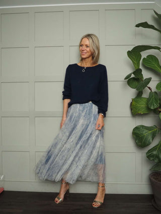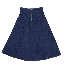 Maddie Midi High Waisted, Deep Pleated Denim Skirt by Seventy Mochi - Dark Americana, Washed Black