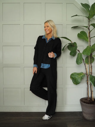 Brandi Soft Wool Mix Waistcoat, Trouser & Cardigan Set - Black, Ecru and Taupe