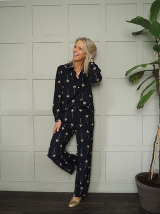 Anantara Embroidered Palm Tree Shirt and Trouser Set - Gold/Navy Blue