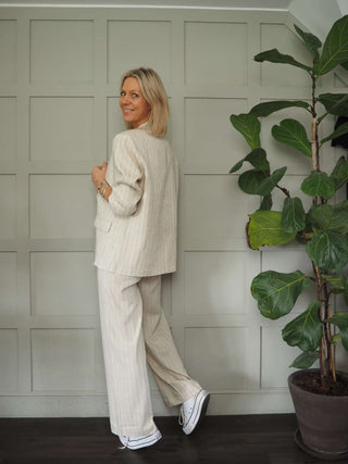 Charlie Single-Breasted, Relaxed Fit, Linen Mix Pin Striped Blazer - Stone