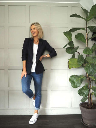 Kinga Single-Breasted, Linen Blazer with Faux Pockets by Part Two - Navy Blue, Oatmeal, Pale Pink, Raspberry, Sage Green