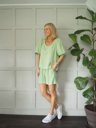 Leonard Linen Mix Top and Shorts Set - Green, Pink, Sky Blue and Stone