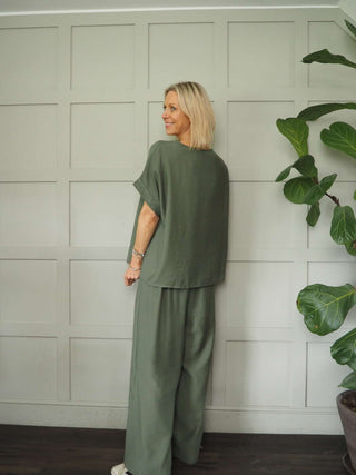 Davinchi Short Sleeved Top & Wide Leg Trouser Set - Khaki, Navy Blue