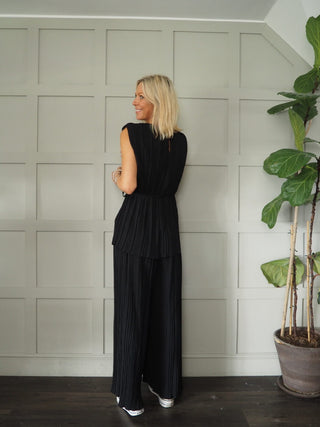 Hava Pleated, Sleeveless Top & Wide Leg Trouser Set - Black and Navy Blue