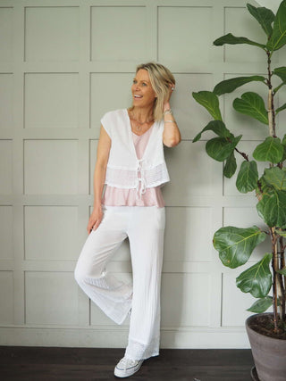 Eleven Vest Top & Wide Leg Trouser Set - Blue and Pink Striped