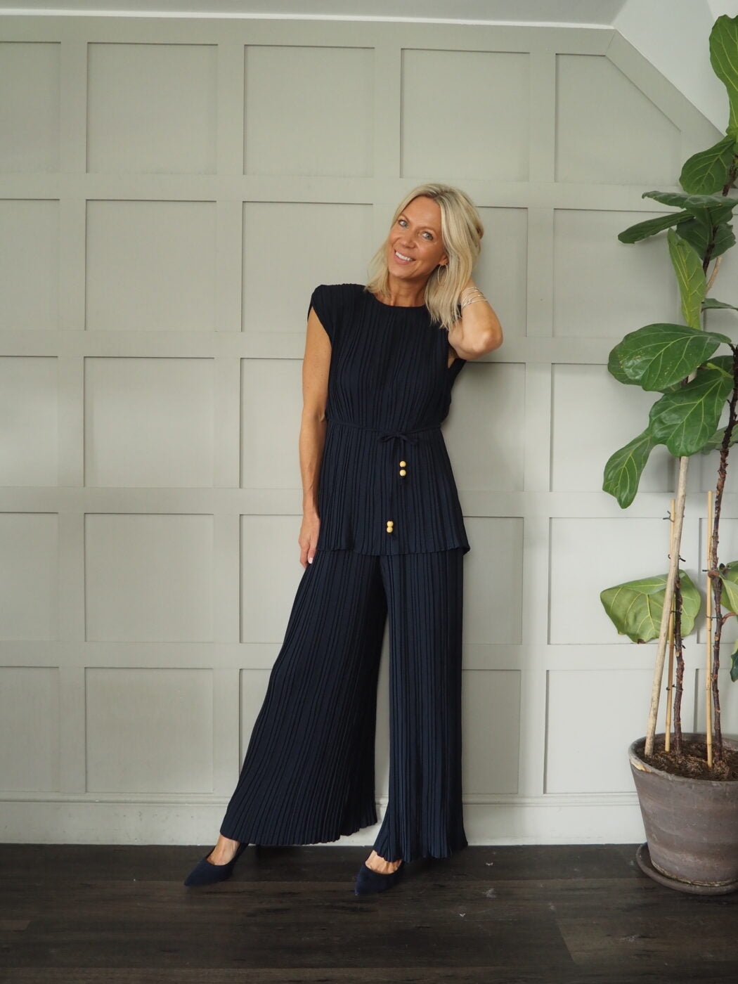 Hava Pleated, Sleeveless Top & Wide Leg Trouser Set - Black and Navy Blue