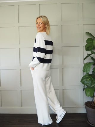 Tia Soft Jumper & Trouser Lounge Set - Black, Stone and White Stripe