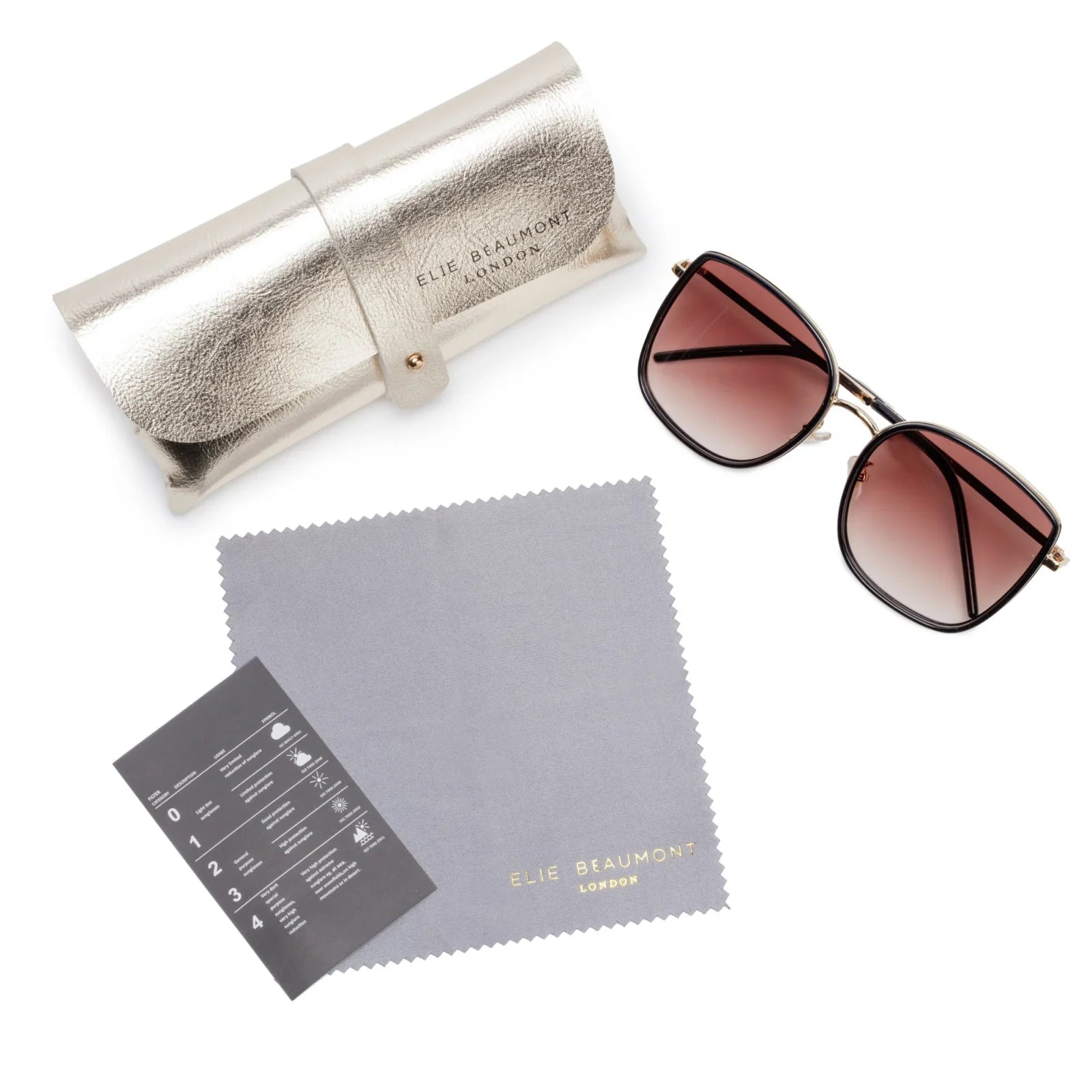 All Elie Beaumont Sunglasses are supplied with a gold leatherette case and branded cleaning cloth.