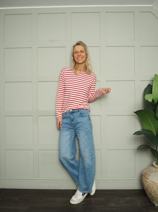 Harriet Long Sleeve Stripe T Shirt - Black/White, Navy/Off White, Red/White