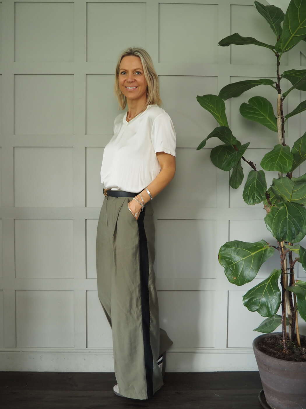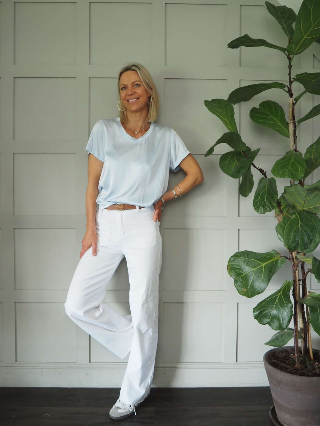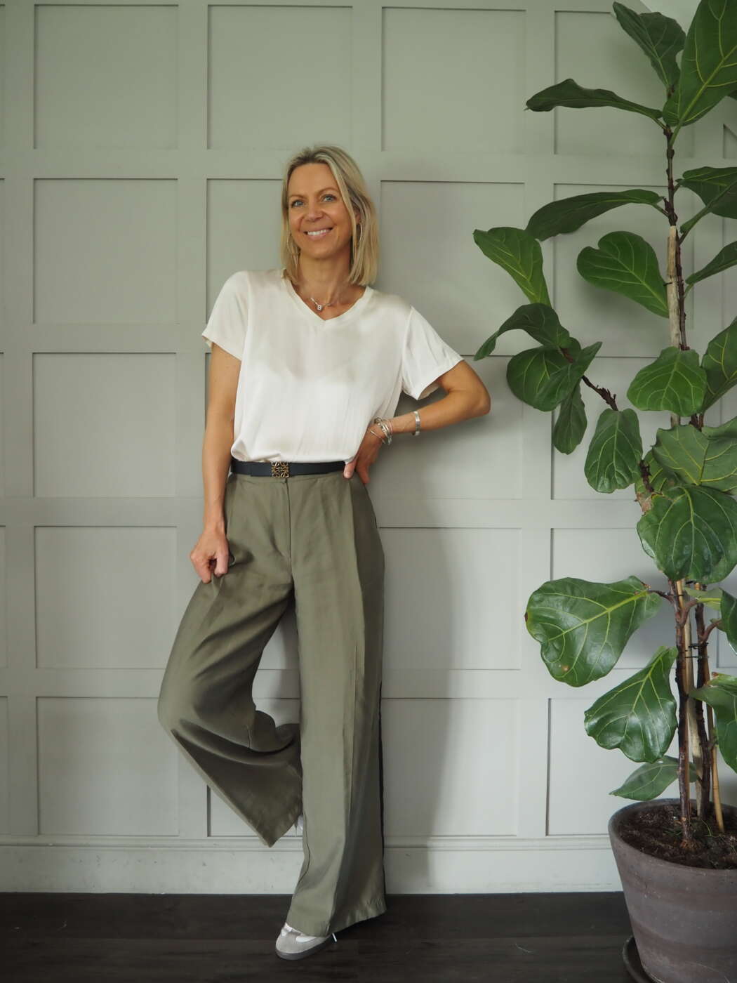 Worn here with the matching Honie Silk Mix Trousers – 3 Colours and the Dillon trousers – 3 Colour Ways and the Dotrice Jeans – 3 Colours