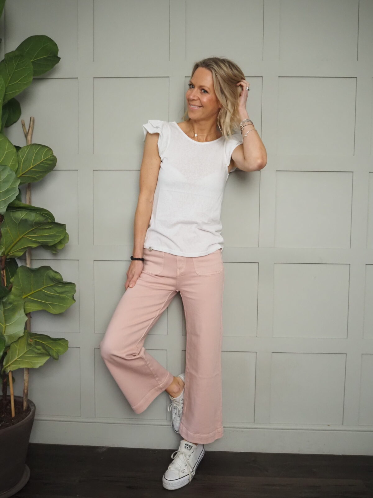 Sizing: XS (6-8), Small (8-10), Medium (10-12) and Large (12-14). Becky is a size 8-10, 5’9″ tall and is wearing the Small.