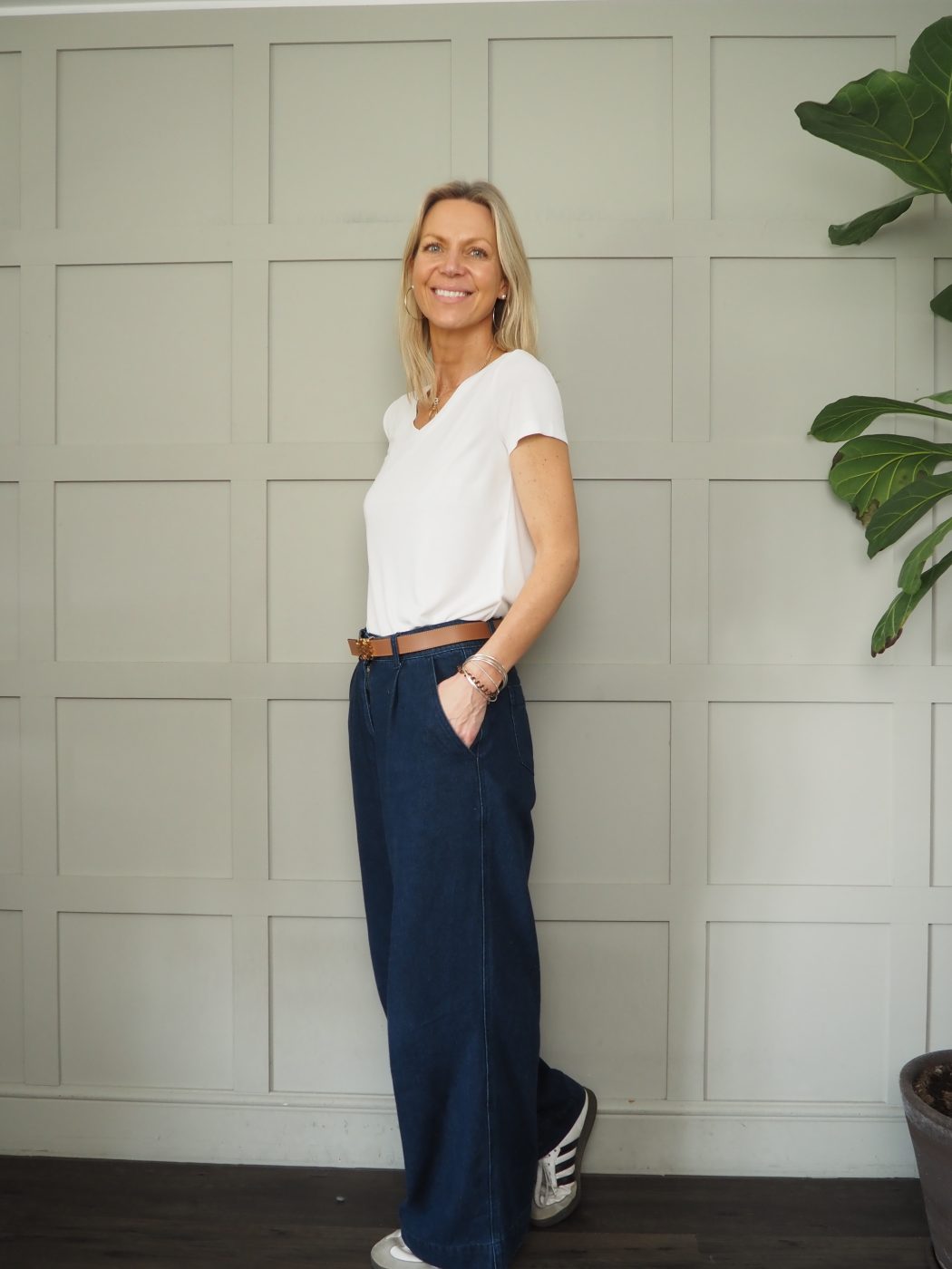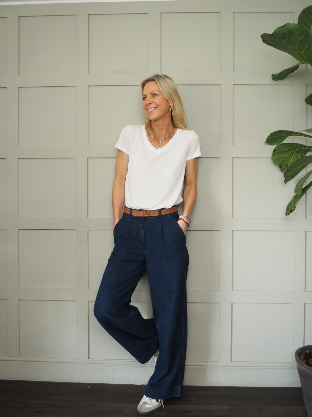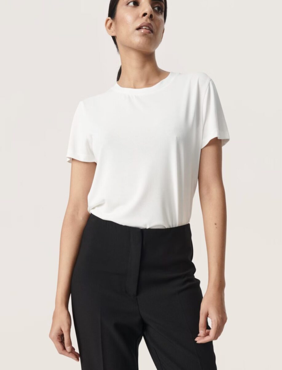 This is a fantastic wardrobe staple – being a modal mix it feels so beautiful to wear and is such a great cut. Silky soft, this will be worn on repeat! It has a crew neck and short sleeves. Also available in a V neckline Columbine Silky Soft V Neck T Shirt by Soaked – Off White