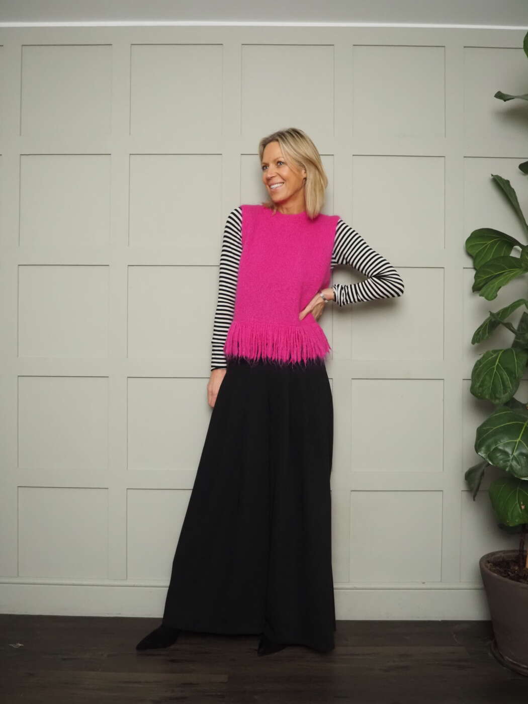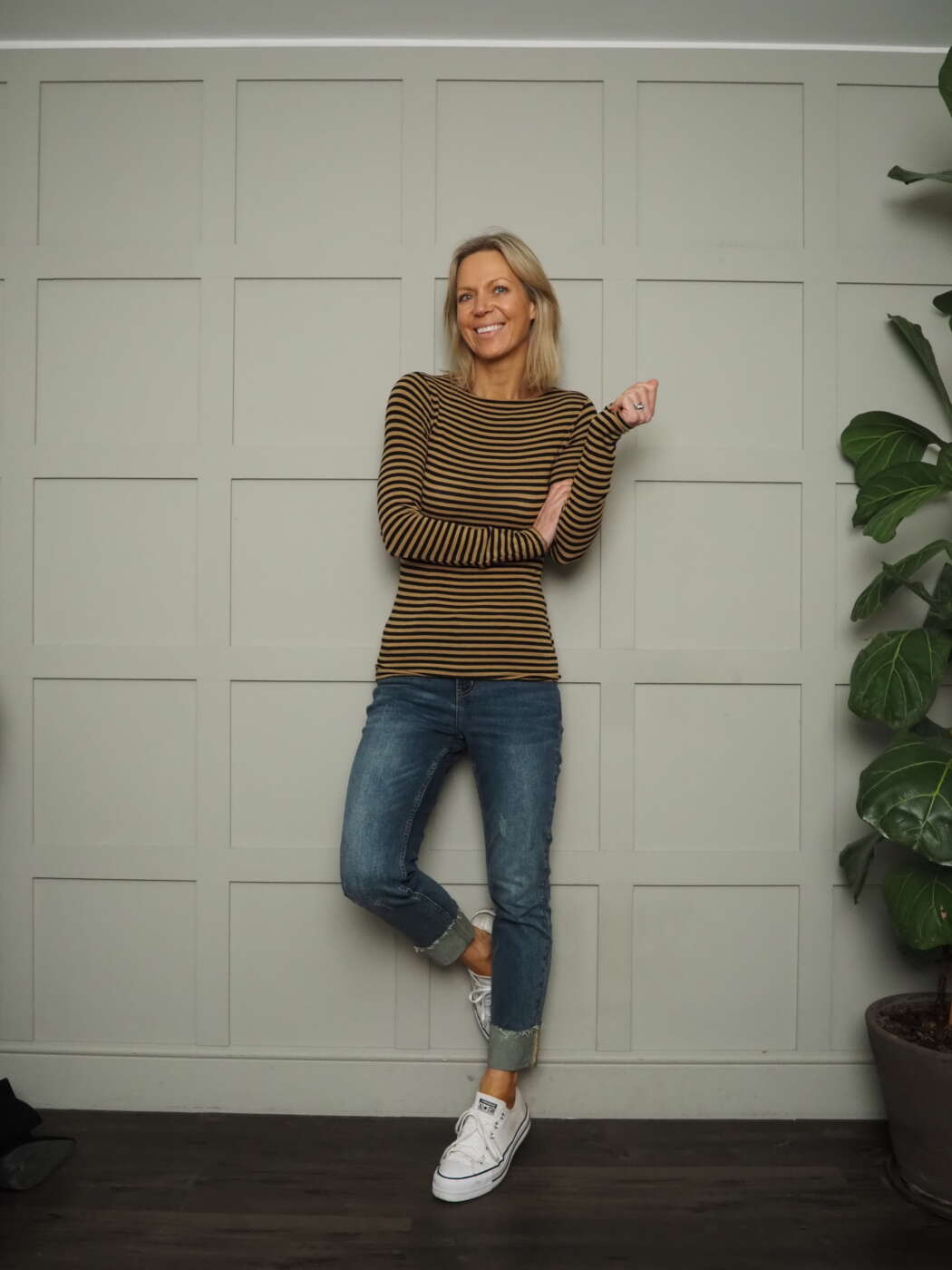 Gorgeous long sleeved layering piece – this is a super soft, striped, fine knit top.